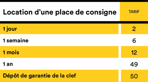 Si une place est disponible dans la consigne de votre choix, vous pouvez réserver en ligne. Dans le cas contraire, vous pouvez vous inscrire sur la liste d'attente.
